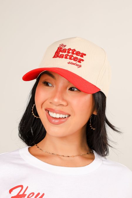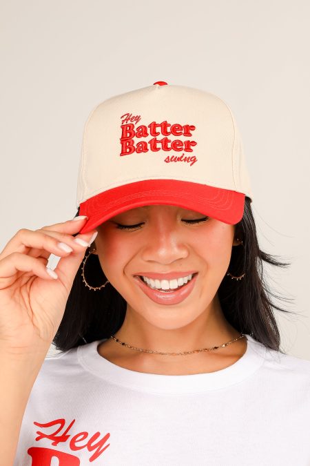 $323.00Calling all Atlanta residents, the Red Hey Batter Batter Swing Embroidered Hat was made just for you! This cute hat is made of a soft cotton construction. It has a rounded top and a slightly rounded brim with “Hey Batter Batter Swing” embroidered on the front! Adjustable Strap Embroidered 100%…