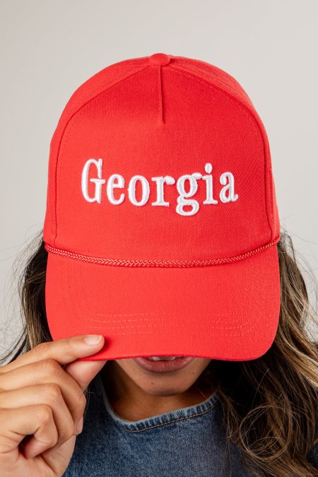 $443.00The Red/Black Georgia Color Block Embroidered Hat was made just for you! This cute hat is made of a soft cotton construction. It has a rounded top and a slightly rounded brim with “Georgia” embroidered on the front! Adjustable Strap Embroidered 100% Cotton Spot Clean with Damp Cloth or Sponge…